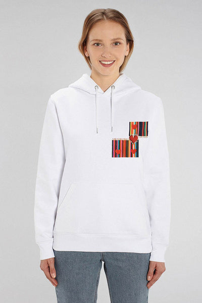 White Love Heart Graphic Hoodie, Heavyweight, from organic cotton blend