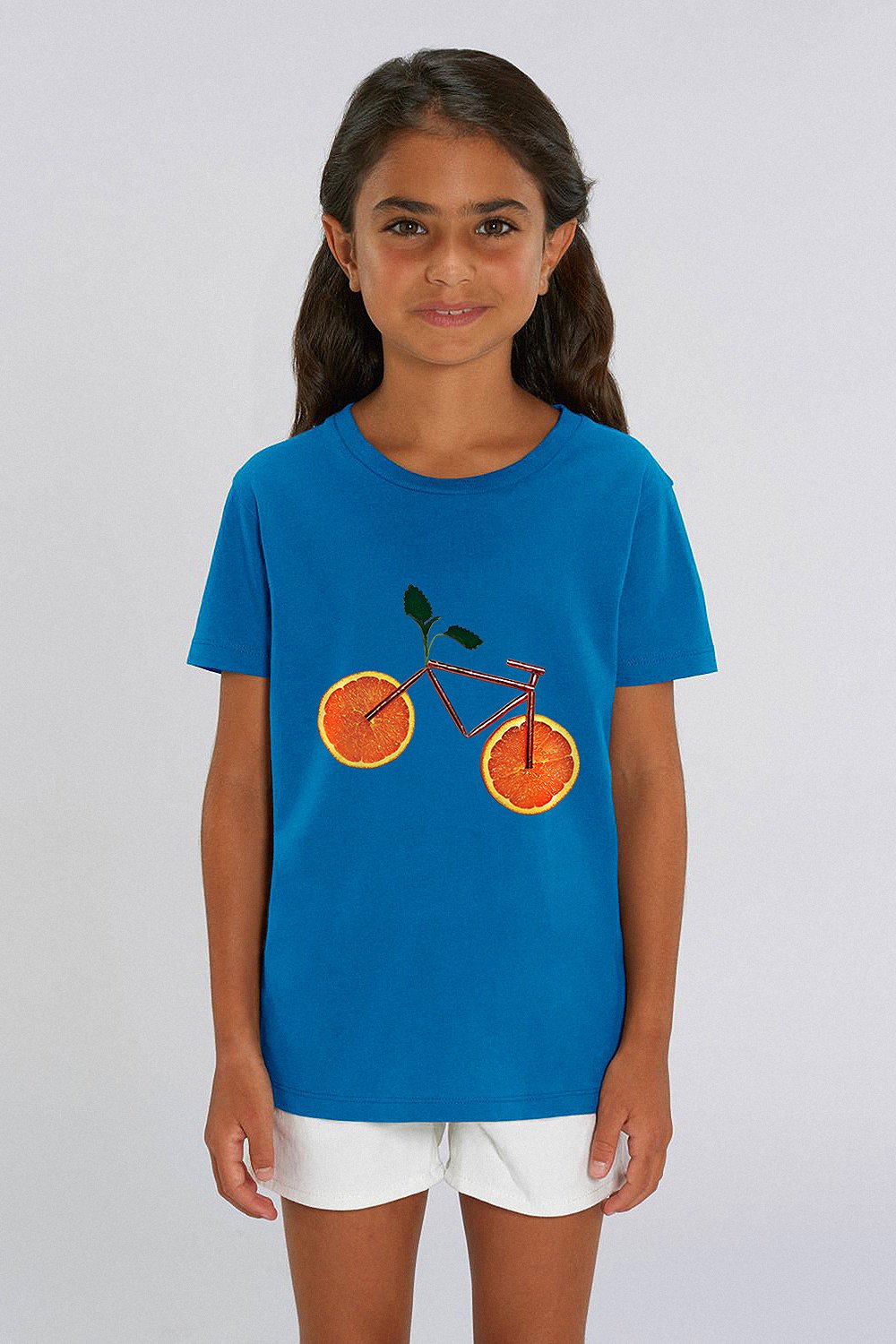 Crafted from soft organic cotton this graphic t-shirt with orange bicycle print reflects energy, free joyful spirit and balanced living, so cherished by BHappy Brand